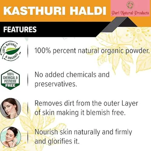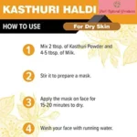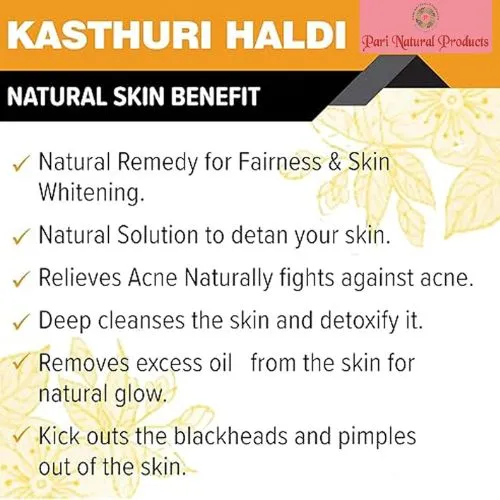 - Easy Application: Mix 1 teaspoon of Kasturi Haldi powder with 1 teaspoon gram flour (besan) and rose water to create a paste, apply to affected areas, leave for 10-12 minutes, then wash off