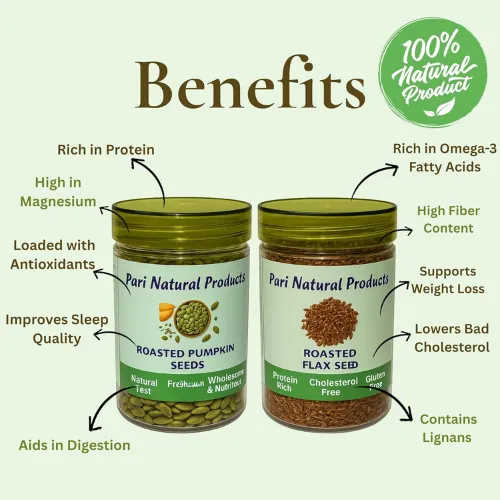 - Crunchy, Roasted & Versatile in Use: Both pumpkin and flax seeds are dry roasted to preserve crunch and natural flavor without any added oil or preservatives. Enjoy them as a healthy snack or add to salads, smoothies, yogurt, cereals, or baked goods for an added crunch. A tasty and guilt-free way to eat better.